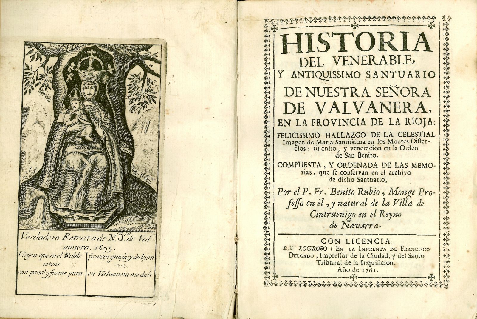 Historia del Venerable y Antiquísimo Santuario de Nuestra Señora de Valvanera, en la provincia de La Rioja: felicíssimo hallazgo de la Celestial Imagen de María Santísima en los Montes Distercios: su culto y veneración en la Orden de San Benito, compuesta