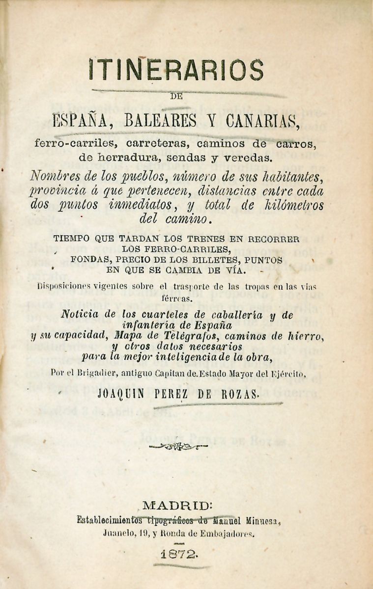 Madrid. Manuel Minuesa. 1872. En 12º, holandesa. 203 p. y 591 p. y un mapa plegado de España.