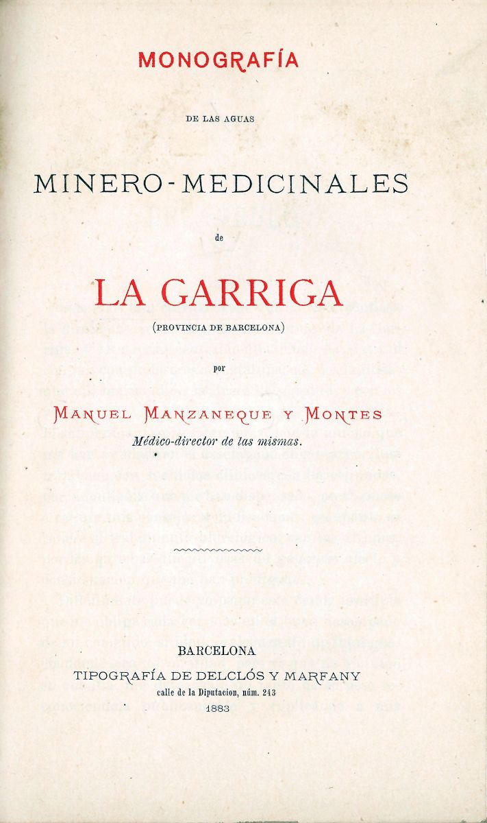 Monografía de las aguas minero-medicinales de la Garriga (provincia de Barcelona).