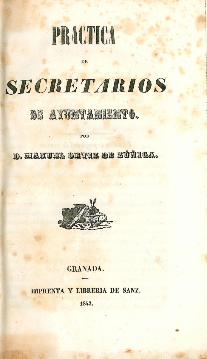 Granada. Sanz. 1843. 8º mayor, holandesa, hierros y dorados en lomo, cortes pintados en azul. XXIII. 330 p. 2 h. tabla plegada en p. 44. Palau 206159.