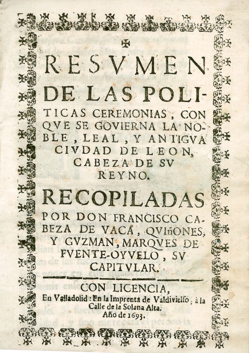Resumen de las políticas ceremonias, con que se gobierna la Noble Leal y Antigua Ciudad de León, Cabeza de su Reyno.