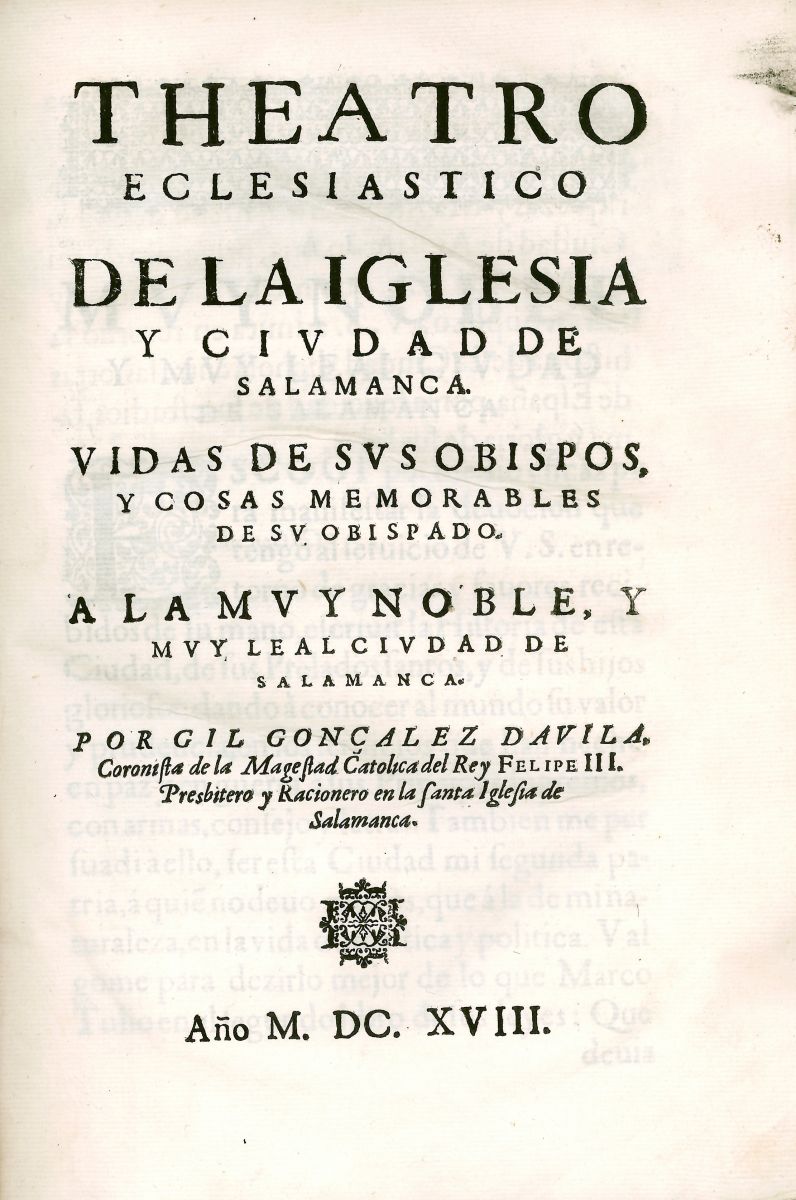 Theatro Eclesiástico de la Iglesia y Ciudad de Salamanca. Vidas de sus Obispos y cosas memorables de su Obispado. A la Muy Noble y Muy Leal Ciudad de Salamanca